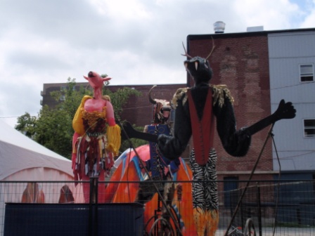 空き地に置いてあった,お祭りの出し物ぽい牛的な何か.